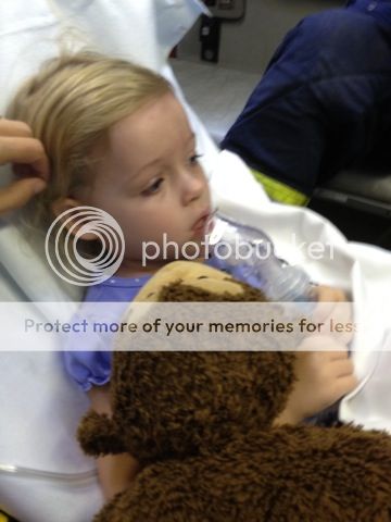 Here she is riding in the ambulance. She's such a little trooper.